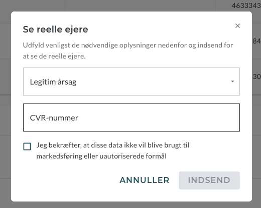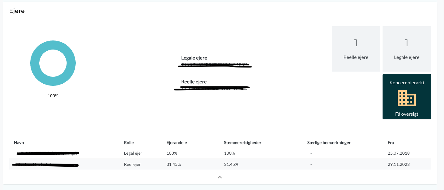 Når du har indsendt dine oplysninger, låses dataene op, og informationen om virksomhedens reelle ejere vil nu blive vist fuldstændig, som du er vant til.